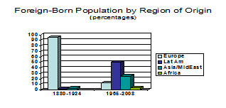 The previous peak immigration period took place around the turn of the 20th century, when 22 million people immigrated to the United States. But the racist immigration policies of that time meant that 95% of these earlier immigrants were from Europe. Today, only 13% – one-eighth – are from Europe. Half are from Latin America, a quarter are from Asia and the Middle East, and about4% are from Africa.5 Immigration has declined sharply over the past year or so, largely because of the world-wide economic situation. But the long-term effects of this immigration cycle will remain with us, including its contribution to our increasing religious pluralism.